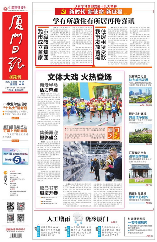 11月25日,廈門首家市級教育集團——廈門國(guó)貿教育集團有限公司揭牌成(chéng)立。《廈門日報》專題報道(dào)了《履行國(guó)企責任助力廈門教育》、《我市成(chéng)立首家市級教育集團》。