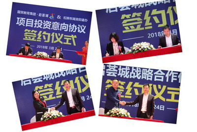 開(kāi)業儀式上,國(guó)貿教育集團啟荟城分别與紐約國(guó)際、佳音英語、至慧學(xué)堂、閩體擊劍、韋納英語等合作商戶簽署了戰略合作協議,并與石獅市湖濱街道(dào)就(jiù)投資建設啟荟城教育綜合體項目簽訂投資意向(xiàng)協議書。