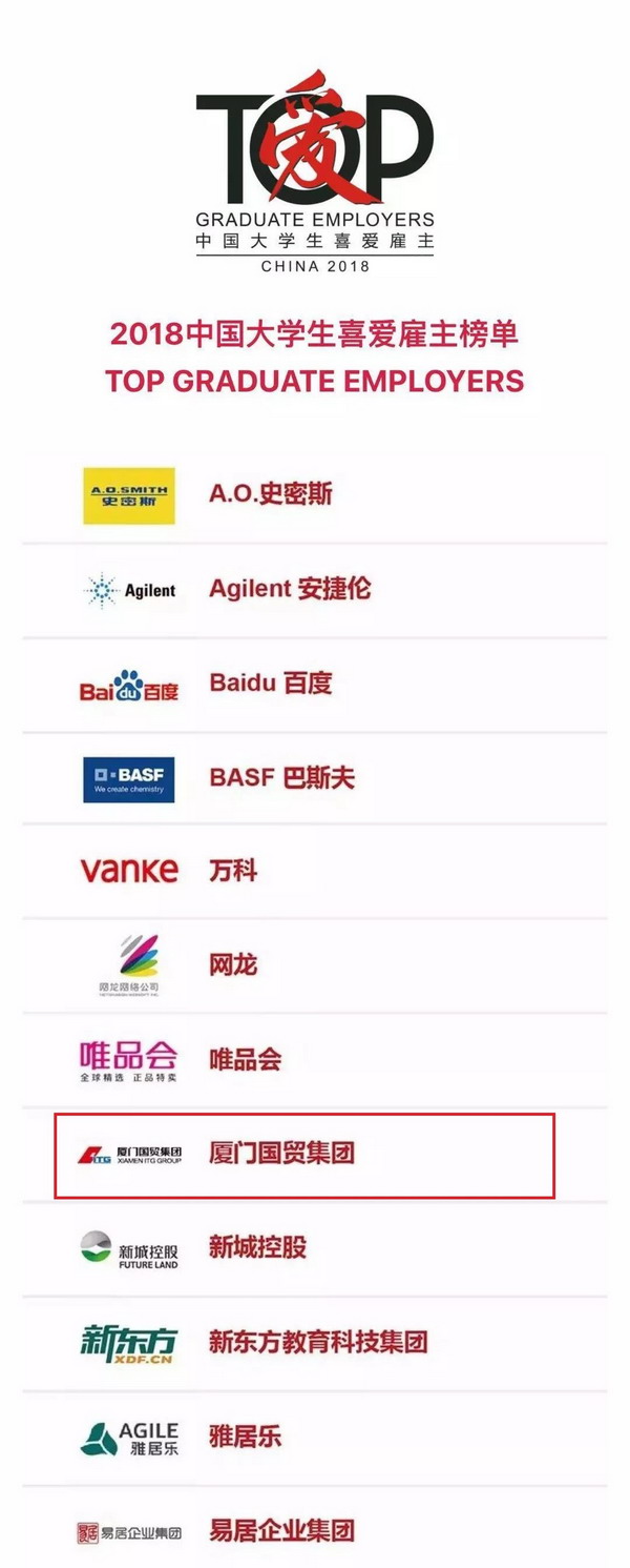 “中國(guó)大學(xué)生喜愛雇主”(Top Graduate Employers)評選由中國(guó)領先的人力資源服務商前程無憂(51job.com)和擁有數百萬大學(xué)生用戶的應屆生求職網(yingjiesheng.com)聯合發(fā)起(qǐ),經(jīng)過(guò)評選,全國(guó)70多家企業上榜,福建3家企業入圍。