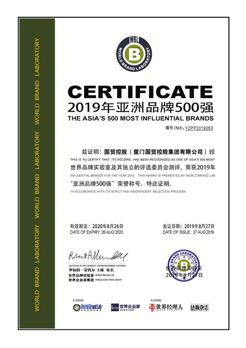 會(huì)上揭曉了世界品牌實驗室(World Brand Lab)編制的2019年《亞洲品牌500強》排行榜。廈門國(guó)貿控股集團有限公司位列2019《亞洲品牌500強》排行榜第263位。