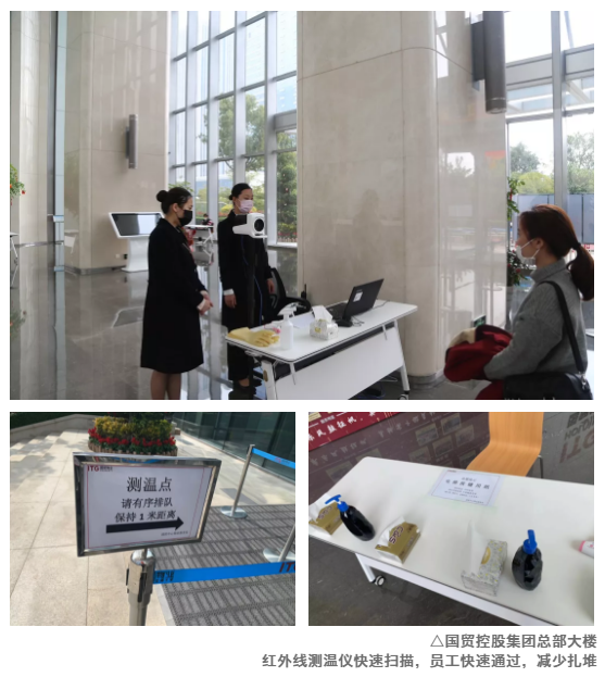 2月10日8時(shí),國(guó)貿控股集團總部大樓門前停了數台班車。這(zhè)是新冠肺炎疫情發(fā)生以來的首日複工,員工們戴著(zhe)口罩從班車上有序下車,在指定的區域排隊等候,彼此之間保持1米以上的安全距離。進(jìn)入寫字樓,一台紅外線測溫儀正快速掃描著(zhe)。員工靠近一站,體溫立即呈現在屏幕上,無需等候,高效通過(guò)。