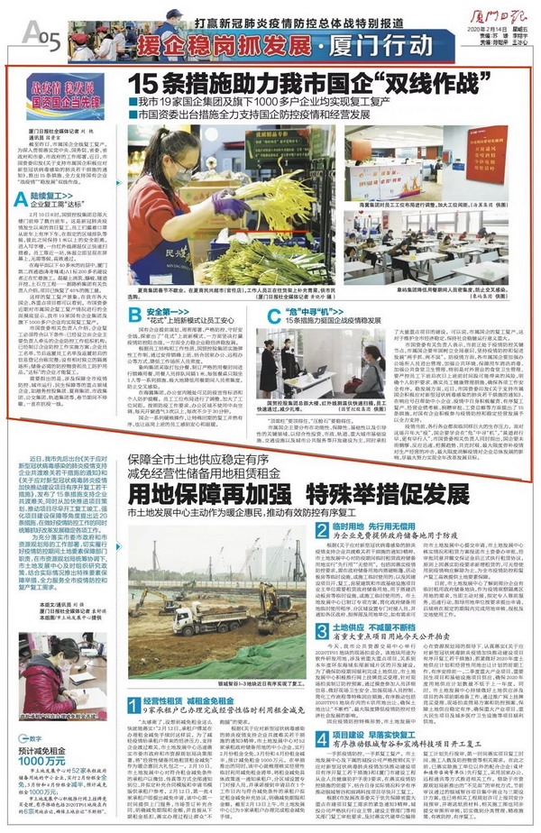 截至昨日,市屬國(guó)企全線複工複産。為深入貫徹落實黨中央、國(guó)務院、省委、省政府和市委、市政府的工作部署,近日,市國(guó)資委印發(fā)《關于支持市屬國(guó)企積極應對(duì)新型冠狀病毒感染的肺炎若幹措施的通知》,推出15條措施,全力支持國(guó)有企業“戰疫情”“穩發(fā)展”雙線作戰。