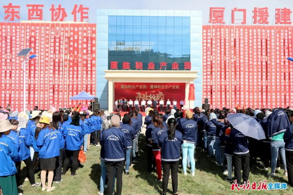 昨日上午,占地45畝的廈琳鞋業有限公司全産業鍊鞋業園在臨夏州和政縣投産開(kāi)業。
