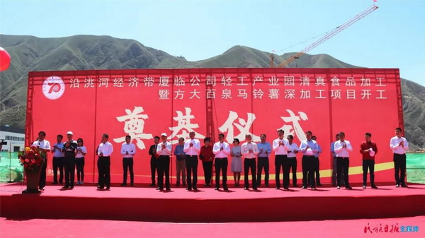 當天下午,臨夏州東鄉縣達闆鎮輕工業園區,東鄉縣委縣政府在此舉行沿洮河經(jīng)濟帶重點項目工程暨廈臨公司(達闆)輕工産業園開(kāi)工奠基儀式,項目建設用地面(miàn)積約26447.35平方米。建設标準廠房、配套辦公樓等,總投資約5500萬元。該産業園將(jiāng)為搬遷群衆穩得住、有就(jiù)業、可緻富提供重要支撐,是促進(jìn)達闆持續發(fā)展的産業項目,在整個沿洮河經(jīng)濟帶建設中具有重要作用。