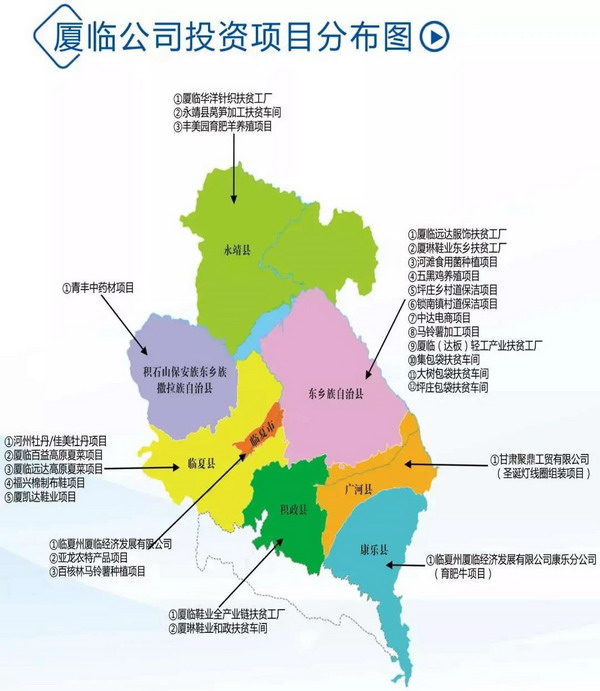 廈門六家國(guó)有企業,由國(guó)貿控股集團牽頭,聯合建發(fā)集團、象嶼集團、港務控股集團、輕工集團和夏商集團共同出資1.99億元組建臨夏州廈臨經(jīng)濟發(fā)展有限公司(以下簡稱“廈臨公司”),通過(guò)東西部協作對(duì)臨夏州實施産業幫扶。三年來,廈臨公司不辱使命,展現了國(guó)企的責任與擔當。在臨夏州委州政府、各縣委縣政府和州縣各部門各族群衆的大力支持下,廈臨公司通過(guò)“國(guó)企帶民企”“扶貧工廠+扶貧車間+扶貧作坊”等模式,積極推進(jìn)與臨夏州産業合作,已形成(chéng)全方位、多層次、寬領域的格局,成(chéng)功實現“造血式”扶貧和“活血式”運營效果。