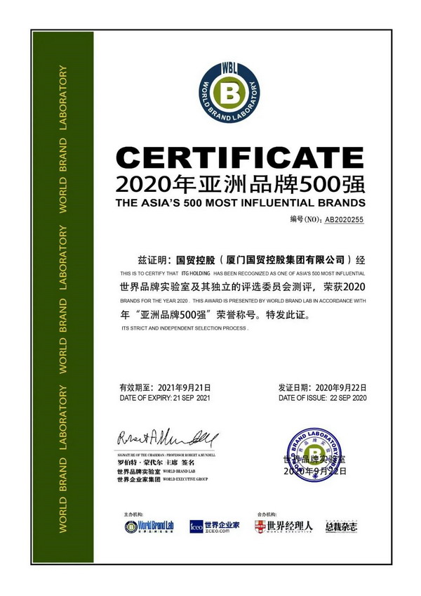 國(guó)貿控股集團榮登亞洲品牌500強255位