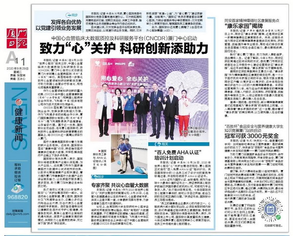 在9月29日“世界心髒日”到(dào)來之際,中國(guó)心血管臨床大數據質控及科研服務平台(CNCDR)廈門中心啟動儀式日前在廈門大學(xué)附屬心血管病醫院(簡稱“廈心醫院”)舉行。其落地將(jiāng)進(jìn)一步強化我市心血管領域科研創新載體支撐,對(duì)助力我國(guó)心血管診療标準化、規範化進(jìn)程具有重要意義。
